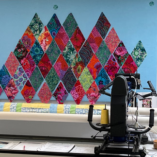 We pamperd our guests with great meals. They all had access to the machines so they didn't have to bring their own and they sewed most every day. We took them for a shop hop in BIG RED. They enjoyed making the cactus pin cushion. We also took them to the saguaro national park. The hot tub and massage were real hits. Mrs Roadrunner came by everyday with her child to eat meatballs. At the end of a full week we had show and tell and a surprise birthday! Lovely week. Even though the puzzle didn't get completed. Next group may.